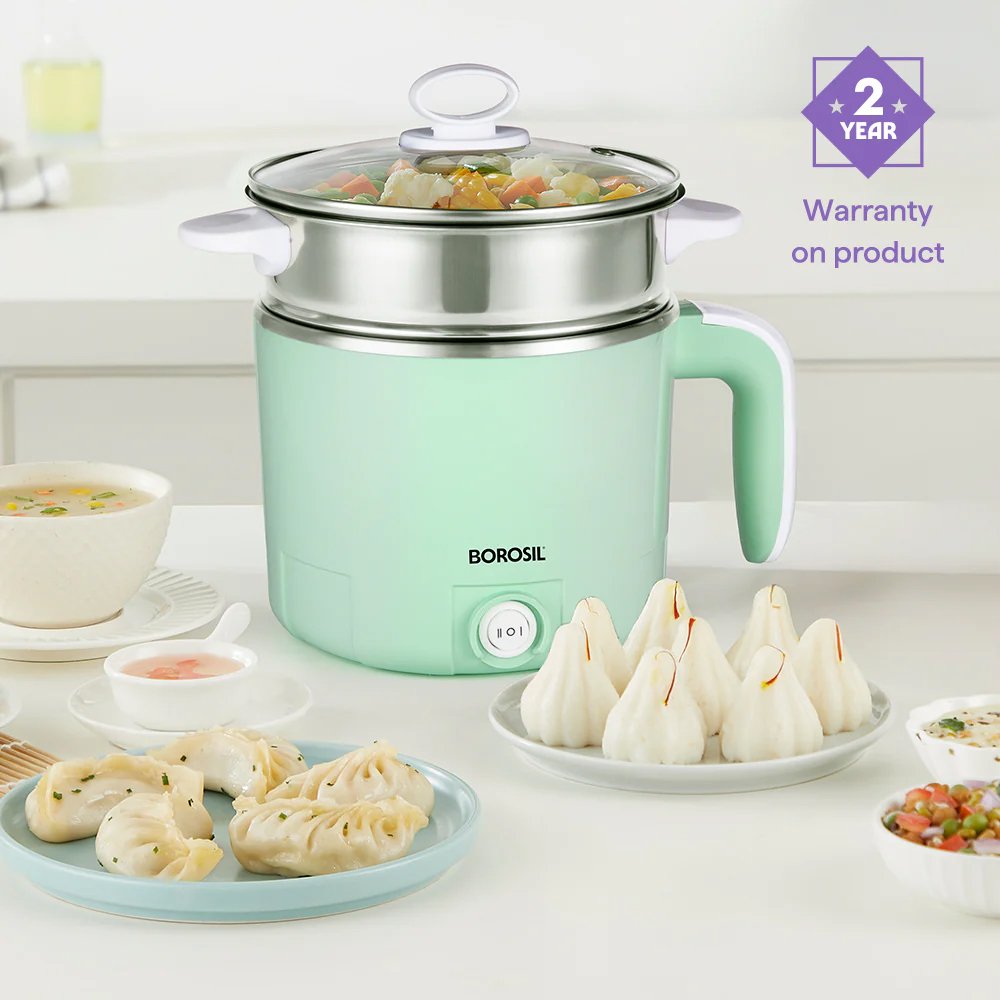 Operating at 230V AC / 50 Hz, it ensures consistent performance on Indian household power supply. The shiny and durable finish makes it easy to clean and maintain, while the Borosil trust guarantees quality and safety. Whether you’re a student, working professional, or homemaker, the Borosil Klassic Multi Kettle is a smart and reliable companion for everyday cooking.