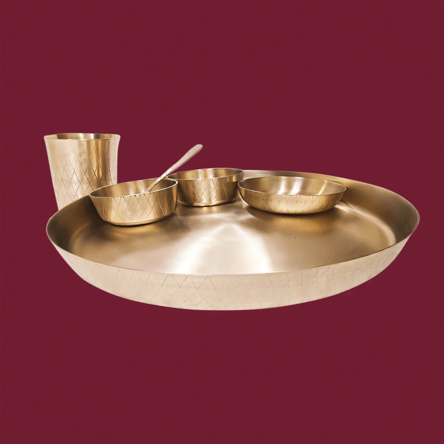 Perfect for gifting during weddings, housewarmings, or festive celebrations, the Bronze Dinner Set – Checks reflects timeless elegance and cultural heritage in every meal you serve.