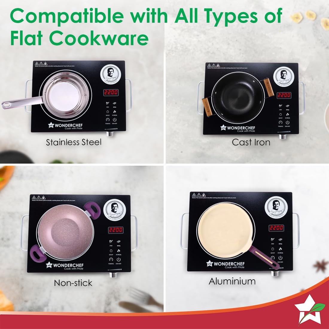 Revolutionize your kitchen with the Wonderchef Easy Cook Infrared Cooktop, a smart and stylish solution for fast, energy-efficient cooking. Powered by 2200 watts, this infrared cooktop delivers quick and even heating, suitable for all types of cookware — including stainless steel, aluminum, ceramic, and glass.